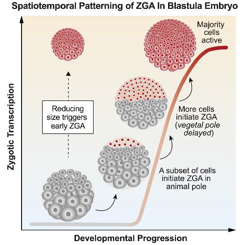 Figure 1. Spatiotemporal Patterning of Zygotic Genome Activation at the Single-Cell Level in Xenopus Early Embryogenesis.