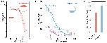 dashed lines indicate half max D:C ratio derived from respective fittings with Hill function. The dashed double-headed