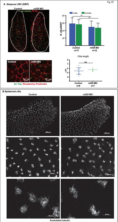 Figure S7: Cilia appear structurally normal after rnf20 depletion
