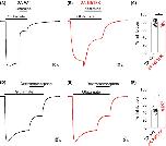 Figure 1. GluN2AN615K reduces Mg2+, memantine and amantadine block. A and B, Representative two‐electrode voltage‐clamp recordings made from oocytes expressing GluN2AWT or GluN2AN615K–containing NMDA receptors showing response to glutamate (30 μmol/L) and inhibition by memantine (10 μmol/L), Mg2+ (1 mmol/L) and the two combined, in the continuous presence of glycine (30 μmol/L). Holding potential –60 mV. C, Summary data showing percentage inhibition by memantine (10 μmol/L), Mg2+ (1 mmol/L) and the two combined for oocytes transfected with either GluN2AWT or GluN2AN615K –containing NMDA receptors, voltage‐clamped at −60 mV. A two‐way repeated measures ANOVA (blocker as within subjects factor, subunit as between subjects factor) showed a significant main effect of channel blocker (F