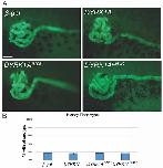 Supplementary Figure 3. Overexpressing DYRK1AR205* or DYRK1AL245R does not cause a gain-of-function phenotype. (A) Xenopus embryos were injected at the 8-cell stage with the rescue dose (50pg) of either ï¢-gal, wild-type DYRK1A, DYRK1AR205*, or DYRK1AL245R RNA. (B) No significant difference (p>0.7) was found between either ï¢-gal and wild-type DYRK1A, DYRK1AR205*, or DYRK1AL245R suggesting neither variant elicits a gain-of-function phenotype. It should be noted that some embryos injected with wild-type human DYRK1A RNA had slightly underdeveloped kidneys suggesting DYRK1A overexpression may also affect kidney development. Experiments were repeated three times with error bars representing standard error. The total number of Xenopus embryos are as follows: β-gal: 67, DYRK1A: 76, DYRK1AR205*: 88, DYRK1AL245R: 65. Scale bar represents 100 µm.
