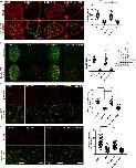 Figure 2. The Drg1âDvl interaction is important for ciliogenesis in MCCs and the GRP. (A) Drg1 knockdown causes a significant reduction of acetylated tubulin on the epidermis of tadpoles, and the expression of WT Drg1, but not the Î329â344 mutant, rescues the knockdown phenotype. A cocktail of synthetic mRNAs and morpholinos (7.5 ng each) was injected into both ventral blastomeres at the four-cell stage of embryos. The injected embryos were fixed at stage 27. For immunostaining, anti-acetylated tubulin antibody was used to visualize multicilia (red), and membrane-GFP (green) was used as a tracer. Relative acetylated tubulin intensity is quantified (image n = 45 from 15 embryos for each condition). ****, P < 0.0001, one-way ANOVA; scale bars, 100 µm. Error bars indicate ± SD. (B) Scanning EM of embryonic epidermis confirms Drg1 knockdown causes ciliogenesis defects. 7.5 ng of control and Drg1 morpholinos was injected into both marginal ventral blastomeres at the four-cell stage, and embryos were fixed at stage 31. Scale bars, 12 µm. (C) Quantification of cilia length in MCCs. Data are plotted as the mean, with error bars representing SD. Measured cilia, n > 100; embryos per group, n = 3; ***, P < 0.001; *, P = 0.012, one-way ANOVA. (D) Quantification of cilia number per MCC, n = 10; embryos per group, n = 3; ****, P < 0.0001, one-way ANOVA. Error bars indicate ± SD. (E) The area of epidermal MCCs of stage 27 embryos; MCCs, n = 100; embryos per group, n = 10; two-tailed unpaired t test. Error bars indicate ± SD. (F) Quantification of the fluid flow with green fluorescent beads (Videos 1, 2, and 3). Velocity of five beads along the body axis was manually measured. Measured bead velocity per embryo, n = 5; embryos (stage 27â28) per group, n = 10; stage 27 embryos; ****, P < 0.0001, one-way ANOVA. Error bars indicate ± SD. (G) Drg1 knockdown decreases the length of cilia in the GRP. The indicated mRNAs and MOs were injected to both marginal dorsal blastomeres at the four-cell stage, and embryos were harvested at stage 18. Dissected GRPs were fixed, followed by immunostaining using acetylated tubulin antibody (red) and anti-GFP antibody (green). Mem-GFP is used as a tracer. Scale bars, 30 µm. (H) Quantification of cilia length in the GRP, measured cilia per group; n > 900, dissected GRPs per group; n = 10, ****, P < 0.0001, one-way ANOVA. Error bars indicate ± SD. (I) Quantification of cilia number on GRP; the ratio of the number of ciliated cells expressing GFP to total GRP cells expressing GFP in experimental groups is normalized to the control and expressed as a relative value to the control (set as 1). GRPs per group; n = 10, ****, P < 0.0001, one-way ANOVA. Error bars indicate ± SD. a.u., arbitrary units; n.s., not significant. |