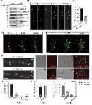 Figure 4. CYFIP2 Regulates Filopodial Dynamics and F-actin in the Growth Cone Peripheral Domain upon Axon-Axon Contact (A) CYFIP2 immunostaining on stage 32 Xenopus retinal growth cone (GC). Arrowheads indicate CYFIP2 in filopodia. (B) Time-lapse imaging of CYFIP2-GFP movements in RGC GC. Arrowheads indicate the accumulation of CYFIP2-GFP. (C) Time-lapse imaging of CYFIP2-GFP movements in an elongating GC filopodia labeled by a membrane marker (blue). Arrowheads indicate CYFIP2-GFP accumulation. (D) Quantification of CYFIP2 signal intensity in GC. (E) Distribution of CYFIP2 signal intensity along RGC axon shaft (last 10 μm) and GC central (C) and peripheral (P) domains. (F) Distribution of CYFIP2-GFP signal intensity along RGC axon shaft (last 10 μm) and GC central (C) and peripheral (P) domains. (G) Scheme illustrating the observed relocalization of CYFIP2 in the GC peripheral domain during axon-contact. (H) Phalloidin immunostaining on isolated or in contact stage 32 Xenopus retinal GCs from CoMO- and CYFIP2MO-injected embryos. (I and J) Quantifications of filopodia length (I) and number (J). (K) Quantification of phalloidin signal intensity in GC. The numbers of GC (D, J, and K) or filopodia (I) analyzed are indicated on the bars. Error bars represent SEM. ∗p < 0.05, ∗∗p < 0.01, ∗∗∗p < 0.001, n.s., non-significant (Mann-Whitney test for D–F and I–K). The GC central domain (c.), peripheral domain (p.), and filopodia (f.) are indicated (A–C). Time stamps are in the format of min:s. Scale bars: 5 μm (A, B left panel, and H); 1 μm (B right panels); 2 μm (H). See also Figure S2. |