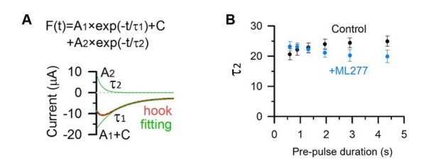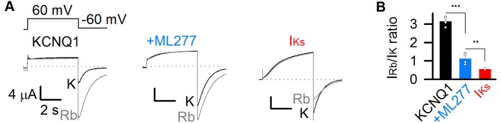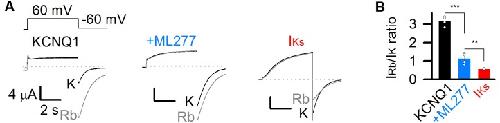 Larsen, Extracellular potassium inhibits Kv7.1 potassium channels by stabilizing an inactivated state. 2011, Pubmed , Xenbase
