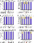 Fig. 9. Opacity and vascularization in Psoralen only (whole cornea), UV only (whole cornea), and UV only (half cornea) controls. Stacked column graphs of corneal opacity and vascularization are shown. For each time point examined, the analysis has been done for the Psoralen only treated control corneas vs. their contralateral corneas (A, D), respectively, the UV only treated control corneas vs. their contralateral corneas (B, E), respectively, and the untreated half vs. the treated half of the UV only half treated control corneas (C, F), respectively. None of the controls showed any signs of opacity at any of the time points examined (silver and blue columns in A, B, E). Whereas a majority of control specimens showed no signs of vascularization (silver and blue columns in D, E, F), some control specimens showed slight vascularization very close to the peripheral boundary of the cornea (gray and orange columns in D, E, F), however, these vessels never extended into the central cornea region. (For interpretation of the references to color in this figure legend, the reader is referred to the Web version of this article.) |