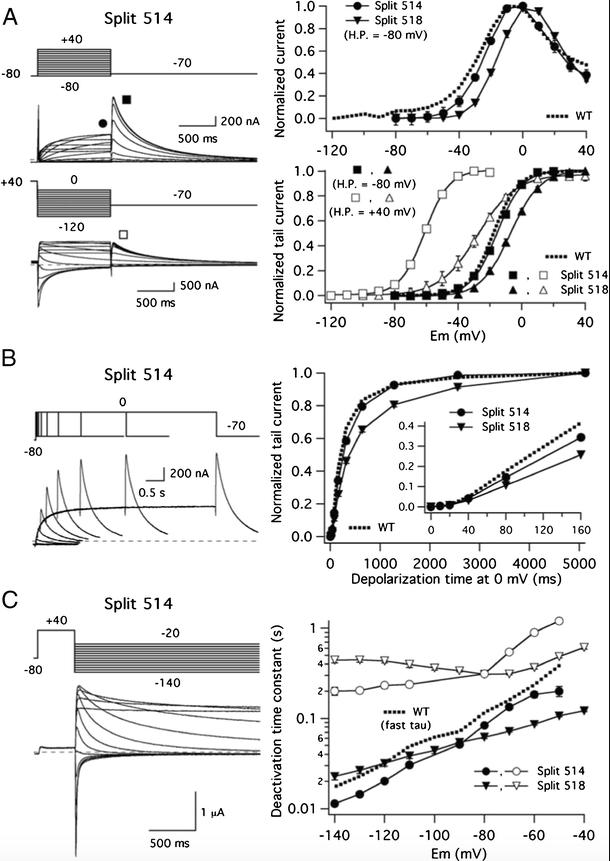 Functional characterization of Kv11.1 (hERG) potassium channels split in the voltage-sensing domain.