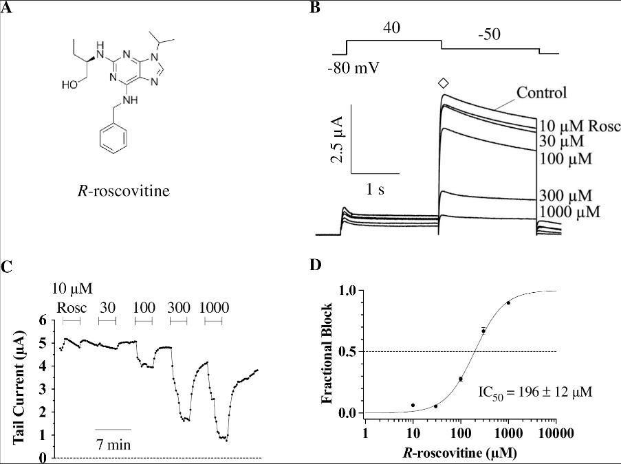 Ganapathi, State-dependent block of HERG potassium channels by R-roscovitine: implications for cancer therapy. 2009, Pubmed