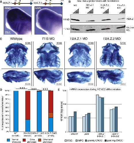 Genes referenced: crebbp eng h2ac21 h2az1 h2az2 hsp90aa1 mmut msx1 ngfr nr2f1 nucb1 otx2 slc12a3 snai1 snai2 sox3 sox9 srcap tfap2a twist1 wt1 zic1