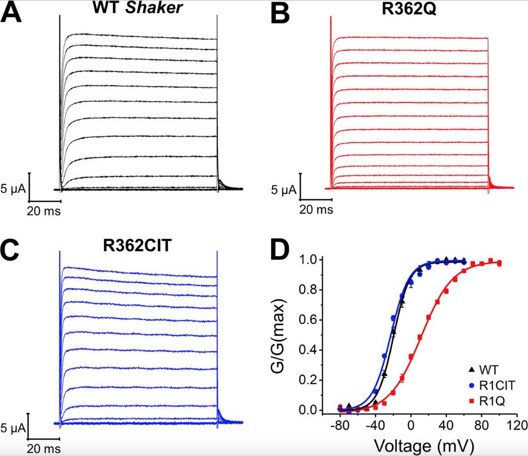 Replacing voltage sensor arginines with citrulline provides mechanistic insight into charge versus shape.