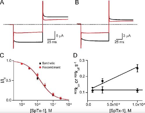 The adenosine triphosphate (ATP)-sensitive (KATP) channels in pancreatic β cells couple the blood glucose level to insulin secretion. KATP channels in pancreatic β cells comprise the pore-forming Kir6.2 and the modulatory sulfonylurea receptor 1 (SUR1) subunits. Currently, there is no high-affinity and relatively specific inhibitor for the Kir6.2 pore. The importance of developing such inhibitors is twofold. First, in many cases, the lack of such an inhibitor precludes an unambiguous determination of the Kir6.2's role in certain physiological and pathological processes. This problem is exacerbated because Kir6.2 knockout mice do not yield the expected phenotypes of hyperinsulinemia and hypoglycemia, which in part, may reflect developmental adaptation. Second, mutations in Kir6.2 or SUR1 that increase the KATP current cause permanent neonatal diabetes mellitus (PNDM). Many patients who have PNDM have been successfully treated with sulphonylureas, a common class of antidiabetic drugs that bind to SUR1 and indirectly inhibit Kir6.2, thereby promoting insulin secretion. However, some PNDM-causing mutations render KATP channels insensitive to sulphonylureas. Conceptually, because these mutations are located intracellularly, an inhibitor blocking the Kir6.2 pore from the extracellular side might provide another approach to this problem. Here, by screening the venoms from >200 animals against human Kir6.2 coexpressed with SUR1, we discovered a small protein of 54 residues (SpTx-1) that inhibits the KATP channel from the extracellular side. It inhibits the channel with a dissociation constant value of 15 nM in a relatively specific manner and with an apparent one-to-one stoichiometry. SpTx-1 evidently inhibits the channel by primarily targeting Kir6.2 rather than SUR1; it inhibits not only wild-type Kir6.2 coexpressed with SUR1 but also a Kir6.2 mutant expressed without SUR1. Importantly, SpTx-1 suppresses both sulfonylurea-sensitive and -insensitive, PNDM-causing Kir6.2 mutants. Thus, it will be a valuable tool to investigate the channel's physiological and biophysical properties and to test a new strategy for treating sulfonylurea-resistant PNDM.