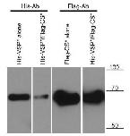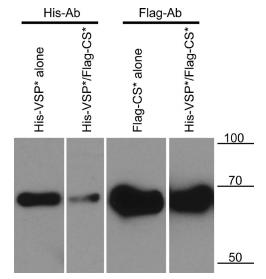 Figure S4. His-VSP*/FLAG-CS* mixtures had significantly higher FLAG-CS* concentrations. Cells were injected with a 1:10 ratio of His-VSP to FLAG-CS cRNA to induce a bias toward heterodimerization of an active and an inactive subunit for testing with fTAPP. Western blots confirm the presence of the induced bias. His-VSP* and FLAG-CS* alone were used as positive controls. |