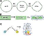 FIGURE 3:. Osmometers for measurement of colloid osmotic pressure inside cells. (A) The cell nucleus as an osmometer (Harding and Feldherr, 1959). The cytoplasm of frog (Xenopus) oocytes was injected with a test solution containing isotonic salt and a variable concentration of PVP or BSA. If the test solution had a colloid osmotic pressure lower than that of cytoplasm, then the nucleus swelled; if higher, then it shrank. The pore size is governed by the molecular weight cut-off of nuclear pores. (B) Axoplasm extruded from the squid giant axon as a gel osmomoter (Spyropoulos, 1979). The axoplasmic gel shrinks if the ficoll test solution has a colloid osmotic pressure greater than the gel. The pore size depends on the physical properties of the gel. (C) FRET-based molecular osmometer (Liu et al., 2017). Increased colloid osmotic pressure causes the two fluorescent proteins to move closer together on average, leading to increased FRET. The pore size and dynamic range depend on the dimensions and molecular dynamics of the sensor and can be tuned by the structure of the arms. Versions of this sensor published so far had midpoints at considerably higher pressures than the inside of cells.