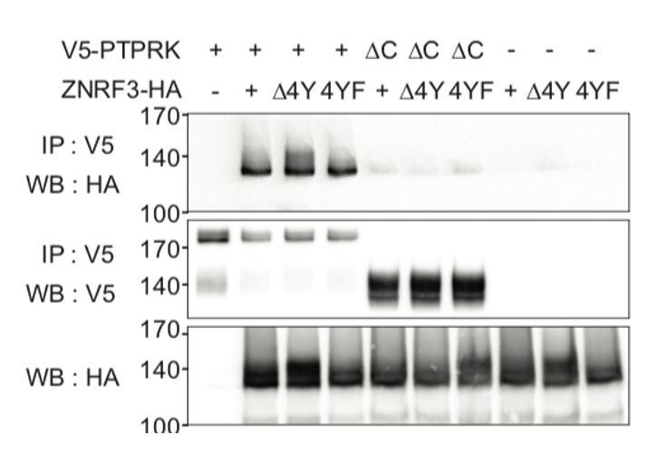 Author response image 1. Internalization-motif mutants of ZNRF3 still bind PTPRK.CoIP experiments in HEK293T cells transfected with the indicated constructs. Data show a representative result from three independent experiments with similar outcomes. |