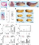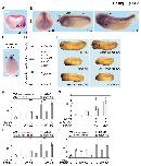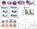 Figure 5 | Znrf3 is coexpressed- and cooperates with Ptprk in early Xenopus embryos (A) Spatial expression of znrf3 in Xenopus tropicalis embryos at blastula (animal view), gastrula (hemisected dorsal to the right), neurula, tailbud and tadpole stages. ba, branchial arches; bp, blastopore; hb, hindbrain; mb, midbrain; nt, neural tube; ov, ovic vesicle; SO Spemann organizer. (B) Representative phenotypes of tailbud stage Xenopus tropicalis embryos injected animally at 2- to 8- cell stage as indicated. (C) Quantification of phenotypes shown in (B). The number of embryos per condition is indicated on the top. (D) Whole mount in situ hybridization of gsc and chordin in gastrula embryos (stage 10.5). Embryos were injected at 2- to 8-cell stage animally with Co or ptprk Mo with or without ZNRF3 RNA. For quantification, see Figure 5 â figure supplement 1C. (E) Topflash reporter assay performed with neurulae (stage 18). Embryos were injected animally at 2- to 8-cell stage as indicated. Suboptimal dosages of ptprk or znrf3 Mos were used in this experiment. Normalized Topflash activity of Co Mo injected embryos was set to 1. (F) Topflash reporter assay performed with neurulae (stage 18). Embryos were injected animally at 2- to 8-cell stage as indicated. Normalized Topflash activity of Co Mo injected embryos was set to 1. Data in all graphs are displayed as means ± SD, and show one representative of multiple independent experiments with three biological replicates. RLU, relative light units. ** P < 0.01. |
