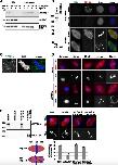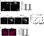 S4. RECQL4 is not required for spindle microtubule assembly. (A) Ran-induced microtubule (MT) assembly in CSF extract. Mock or RECQL4-depleted CSF extract was incubated with RanQ69L-GTP in the presence of Cy3-labled tubulin. After spindle assembly, samples were fixed, spun down on coverslips, and analyzed by confocal microscopy. The number of MT structures was counted in 100 randomly selected fields with a 63à objective. Columns show the average of four independent experiments and circles indicate individual data points. Scale bar, 10 μm. (B) Centrosomal asters were assembled in mock or RECQL4-depleted CSF extract in the presence of Cy3-labled tubulin and purified centrosomes in the presence or absence of RanQ69L-GTP. Samples were fixed, spun down on coverslips, and analyzed by confocal microscopy. MT intensity was quantified. n > 20 structures. NS (not significant) P > 0.05 (t test, two-tailed). (C) DNA-bead spindles were assembled around DNA-coated beads in cycled extract supplemented with Cy3-labled tubulin. After assembly, samples were fixed, stained with DAPI, and analyzed by confocal microscopy. Frequency of bipolar spindles was determined on more than 50 DNA bead clusters, containing 15â40 beads, per experiment and condition. Columns show the average of three independent experiments and circles indicate individual data points. Scale bars, 20 μm. |