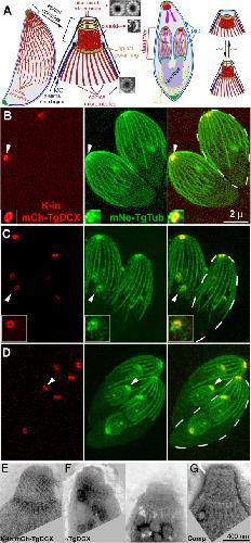 Nagayasu, Loss of a doublecortin (DCX)-domain protein causes structural defects in a tubulin-based organelle of Toxoplasma gondii and impairs host-cell invasion. 2017, Pubmed