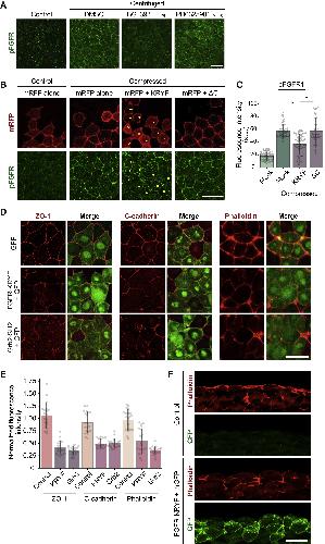 (D) mRNAs encoding FGFR-KRYF or Grb2-SH2 were co-injected with GFP mRNA at the four-cell stage. Embryos were centrifuged at 450 à g for 10 min and stained with indicated antibodies or phalloidin. Scale bar: 50 μm.
