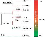 Phylogenetic tree of taxons and common species used as models of regeneration. Coloured dashed lines denote the general regenerative capacity of each taxon, from high (green) to low (dark red). However, it should be noted that this capacity might vary amongst species within the same taxon (e.g. salamanders, teleost fish) and with age within the same species (e.g. fetal versus adult in mammals, or tadpoles versus adults in Xenopus). Lines are not to scale with regards to time.