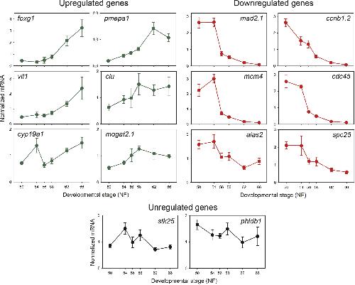 Genes referenced: actc1 actn1 aicda alas2 apobec2 ccnb1.2 cdc45 clasp1 clu cpa1 cxxc4 cyp19a1 ddit3 dnmt3a foxg1 gadd45a gadd45b gadd45g hipk3 idh1 idh2 idh3a ids igfbp5 klf9 mcm4 mogat2 msra myl2 nacc1 pax6 phldb1 pmepa1 pnck slc25a20 sox9 spc25 stk25 tdg tet2 tet3 vil1