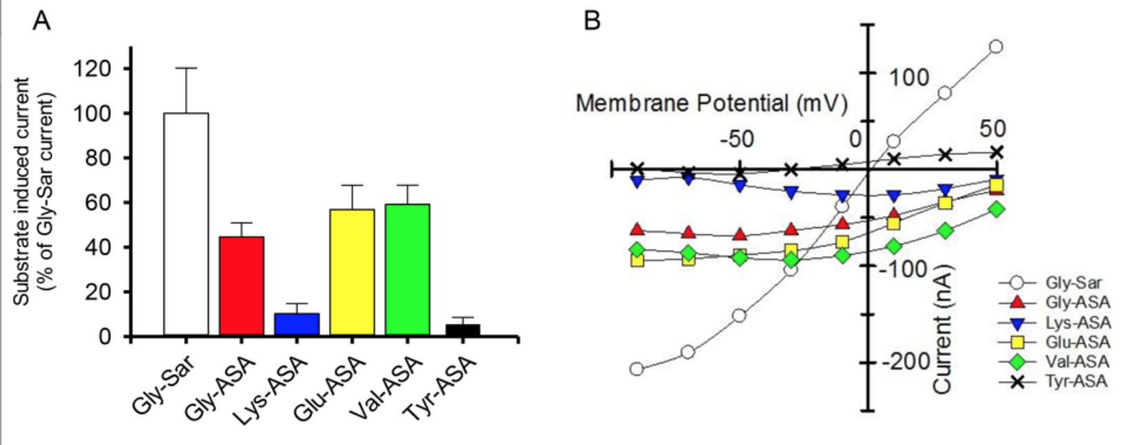 Fig. 6. Inward Currents Induced Gly-Sar and Amino Acid-ASA Derivatives via hPEPT1
