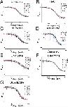 Figure 4- PUFA analogues with taurine head groups have the tendency to broadly modulate Kv7.1/KCNE1, Cav1.2/β3/α2δ, and Nav1.5/β1 channels. Structures for PUFA analogues with taurine head groups: Lin-taurine, N-AT, Pin-taurine, and DHA-taurine (top). (AâB) Dose dependent shifts in the (A) voltage dependence of activation (ÎV0.5) and (B) changes in maximal conductance (Gmax) for Kv7.1/KCNE1 induced by Lin-taurine (black squares; n = 3; mean ± SEM), N-AT (red circles; n = 5; mean ± SEM), Pin-taurine (green triangles; n = 4; mean ± SEM), and DHA-taurine (blue triangles; n = 3; mean ± SEM). (CâD) Dose dependent shifts in the (C) voltage dependence of inactivation (ÎV0.5) and (D) changes in maximal conductance (Gmax) for Cav1.2/β3/α2δ induced by Lin-taurine (black squares; n = 3; mean ± SEM), N-AT (red circles; n = 3; mean ± SEM), Pin-taurine (green triangles; n = 5; mean ± SEM), and DHA-taurine (blue triangles; n = 3; mean ± SEM). (EâF) Dose dependent shifts in the (E) voltage dependence of inactivation (ÎV0.5) and (F) changes in maximal conductance (Gmax) for Nav1.5/β1 induced by Lin-taurine (black squares; n = 3; mean ± SEM), N-AT (red circles; n = 3; mean ± SEM), Pin-taurine (green triangles; n = 4; mean ± SEM), and DHA-taurine (blue triangles; n = 3; mean ± SEM). See Figure 4âfigure supplements 1â6 for more details. |