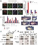 Fig. 3. APCDD1 inhibits BMP signaling in cells and tissues. A-B. The activation of BMP and Wnt pathways was measured at single-cell level, using NIH 3T3 mouse fibroblast cells cultured in the presence of BMP and Wnt ligands. Cells transfected with human APCDD1 and a fluorescence reporter (displayed in red) have low levels of both pSmad1 (green in A) and β-catenin (green in B), while neighboring cells that are not transfected have higher levels of both effectors. Nuclei are visualized with DAPI (blue). C. The immunofluorescence levels of pSmad1 and β-catenin were measured relative to the background (relative expression, Y axis), in the presence (0) or absence (1) of one or both ligands (Bmp2, Wnt3A) or of APCDD1 (n â= â40 âcells per condition). The outputs of BMP and Wnt signaling are inhibited by APCDD1 (p â< â0.001 in Bonferroni-adjusted 2-way heteroscedastic t-test comparisons). D. Effect of Xenopus Apcdd1 (XA1) modulation on BMP-induced transcriptional activity in Xenopus animal injections. Apcdd1 depletion increases transcription induced by exogenous BMP2 RNA, while overexpression of apcdd1 RNA reduces transcription from both the BRE reporter induced by exogenous BMP2, and of the Vent promoter induced by endogenous BMP ligands. âââp â< â0.001 in Studentâs t-test. Embryos were collected at stage 10.5, four embryos per assay, in triplicate, and each experiment was repeated a minimum of 3 times. E-I. The phenotype of XA1 depletion on the dorsal side is rescued most effectively by simultaneous BMP7 depletion (quantification in Fig. S1E). Embryos injected at the 4-cell stage on the dorsal side were collected at stage 36. The dorso-anterior index (DAI) values (Kao and Elinson, 1988) are: E â DAI5 (normal), F â DAI2, G â DAI2, H â DAI3, I â DAI4. For D-I, at least 10 Xenopus embryos, in three different experiments, were examined for each time point and experimental condition. J. Human APCDD1 specifically reduces the protein level of type I BMP receptor BMPRIA, but not the type II receptor BMPR2 and nodal type I receptor ACVR1B. Beta-galactosidase serves as loading control. Xenopus embryos were injected in the animal poles. K. APCDD1 interacts directly with BMPRIA, but not with BMPR2, in CHO cells. APCDD1 and BMPRIA coprecipitated in both APCDD1 (center panel) and BMPRIA (right panel) immunoprecipitation. BMPR2 coprecipitated with BMPRIA (right panel), but not with APCDD1 (center panel). |