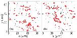 FIGURE 2:. (a) One hundred forty-three representative GM1 trajectories with 400 time steps (80 s). (b) One hundred sixty-two AChR trajectories with 400 time steps (80 s). All the trajectories are obtained from the bottom membrane of a Xenopus muscle cell with a viewing area 68 à 68 μm2. Red trajectories indicate fast-moving GM1s/AChRs and black ones indicate nearly immobile GM1s/AChRs. |