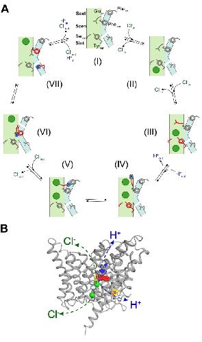 Miller, A provisional transport mechanism for a chloride channel-type Cl-/H+ exchanger. 2009, Pubmed