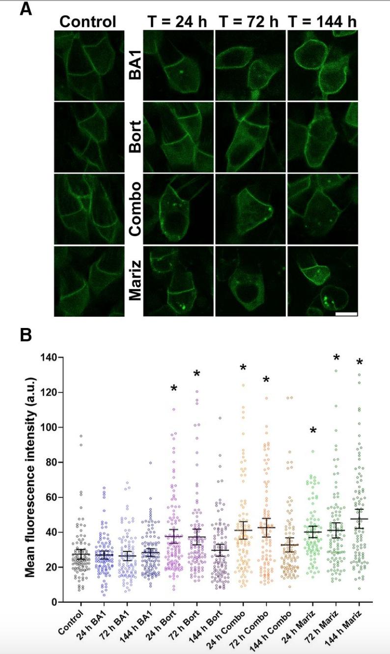 Wu, Bortezomib-resistance is associated with increased levels of proteasome subunits and apoptosis-avoidance. 2016, Pubmed