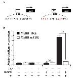 Figure 5: Peak levels of TR binding at the climax of intestinal metamorphosis correlates with peak levels of RNA polymerase II recruitment and H3K79 methylation in the intestine during natural metamorphosis. ChIP assays were performed with indicated antibodies on the intestine of tadpoles at different metamorphic stages. a TR binding to the TRE region of Mettl1 gene at metamorphic climax stages (stage 60 and 62) is increased compared to that at premetamorphic stage 54. After climax, TR binding is reduced in TRE region of Mettl1 gene. b The level of dimethylated H3K79 in the TRE region of Mettl1 gene peaks in the intestine at metamorphic climax. c RNA polymerase II recruitment to the TRE region of Mettl1 promoter also peaks at metamorphic climax period. d Only background ChIP signal is detected with the negative control IgG ChIP throughout metamorphosis. n.s. not significant