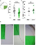 Figure 2. Tadpoles swim slower in the green region of the test dish. (A, far left) Schematic showing the arbitrary white quadrant used for quantifying swimming speeds in the white region; (right) dot plot of swimming speeds while in the white and green region of the test dish (***p < 0.001). Each dot represents the recorded speed of an individual tadpole. (B) Merged video frames showing (left and middle panels) single tadpoles slowing down upon entering the green region of the dish, and (right) a tadpole speeding upon swimming out of the green and into the white region. The faster the tadpole is swimming, the greater distance traveled between frames and visa versa. (C) Dot plot showing the number of times a given tadpole entered a designated white quadrant of the dish, and the number of times they entered the green quadrant (ns = not significant). The probability of freely-swimming tadpoles to enter the green quadrant of the dish is not statistically different from the probability of their moving into a designated white quadrant.