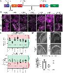 Figure 3. Xenopus model of discs large 5 (dlg5) loss of function provides a platform for testing variant pathogenicity. (A) Schematic diagram of DLG5 protein with domain annotations and locations and effects of uncovered patient variants. CARD, caspase activation and recruitment domain; DUF, domain of unknown function; CC, coiled-coil domain; PDZ, postsynaptic density protein disc large tumour suppressor and zonula occludens-1 domain; SH3, src homology 3 domain; GUK, membrane-associated guanylate kinase domain. (B) Representative images of proximal pronephric tubule ciliation and morphology. Dotted lines indicate bounds of tubule assessed in the image. (C) Quantitation of cilia and tubule morphology rescue efficiency of wildtype and variant DLG5 mRNA demonstrate the differing functionality of DLG5 variants. Ratios are calculated as values from sides with mRNA along with MO divided by values from MO only sides. Red indicates ratios suggesting an exacerbation of the phenotype while green indicates ratios suggesting rescue of the phenotype. (D) Representative images and quantitation of brain ventricle morphology rescue efficiency of wildtype and p.Arg821Ter variant DLG5 mRNA demonstrate the loss of functionality of the p.Arg821Ter DLG5 variant. Statistical tests carried out as analysis of variance (ANOVA) followed by Dunnett’s multiple comparison test with ****p<0.0001, **p<0.005 and *p<0.05 (C) or an unpaired t-test test with *p<0.05 (D). Bars indicate mean and SD of individual values (C) or replicate means (D).