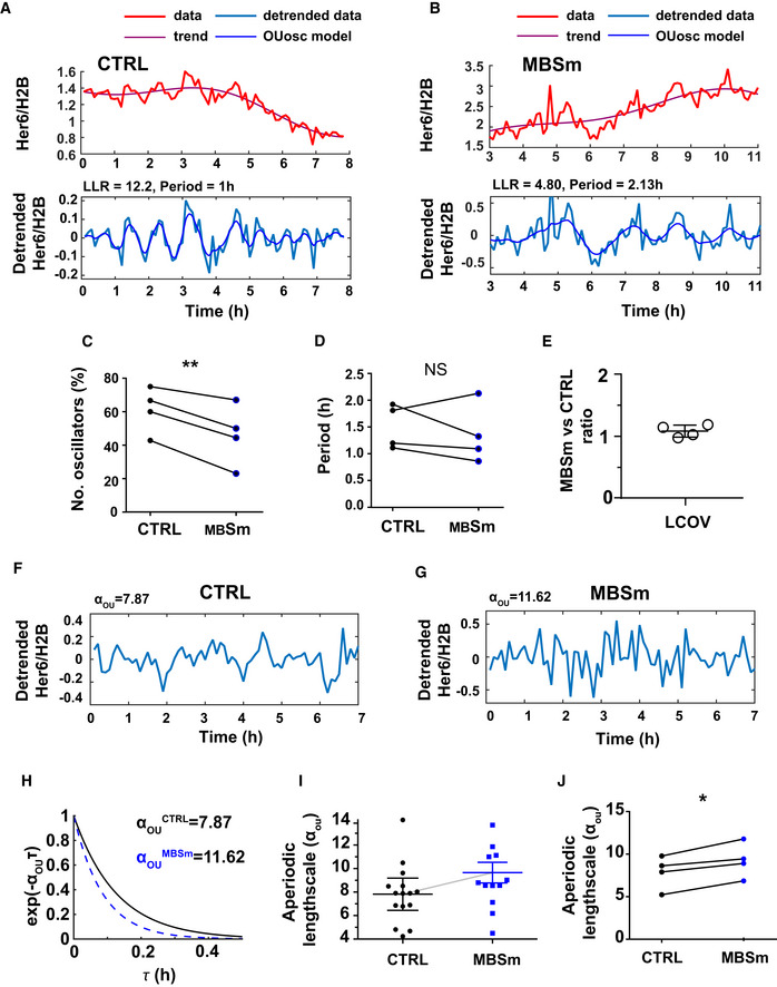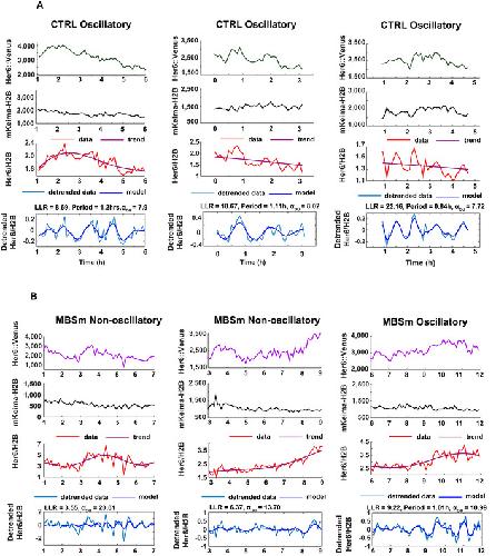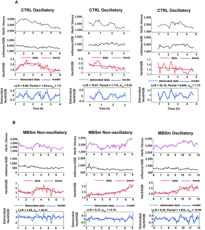 Figure EV3. Single cell dynamics of Her6::Venus observed in progenitors in the presence and absence of miR‐9 regulation. Related to Fig 4