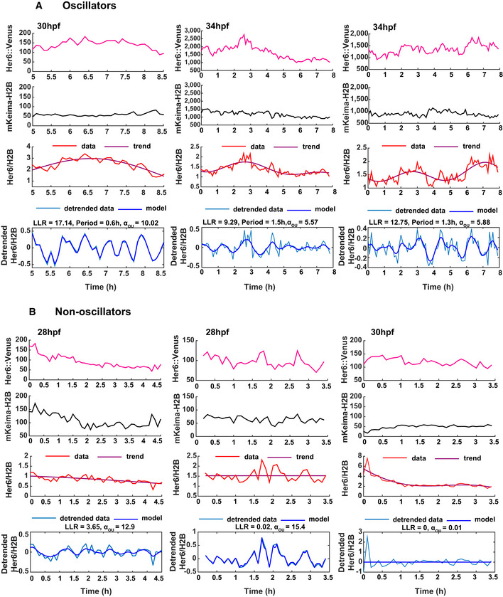 Figure EV1. Single‐cell dynamics of Her6::Venus observed in progenitors at different stages in development. Related to Fig 2