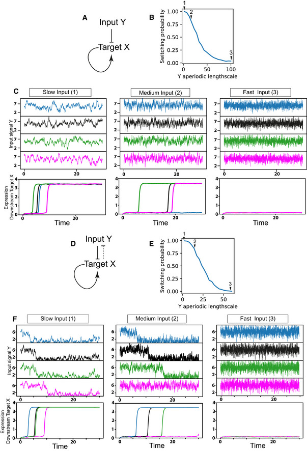 Figure 5. Mathematical model exploring the effect of changes in Her6 dynamics on a downstream target