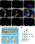 Figure 6 The Pak1 Inhibitor IPA-3 Blocks Endocytosis of Macropinocytic Vesicles and Traffic into BSA-Degrading Lysosomes. (A) Macropinocytic uptake of TMR-dx 70 kDa (red) in Axin1 reconstituted HCC cells treated with DMSO. (B) BSA-DQ (green) in Axin1-reconstituted HCC cells treated with DMSO. (C) TMR-dx and BSA-DQ merged in Axin1 reconstituted HCC cells treated with DMSO. (D) CHIR increased macropinocytic uptake of TMR-dx after 20 min in Axin1 reconstituted HCC cells. (E) CHIR increased BSA-DQ in Axin1 reconstituted HCC cells. (F) TMR-dx and BSA-DQ merged in Axin1-reconstituted HCC cells treated with CHIR. Note that macropinocytic vesicles are red and that as BSA-DQ is degraded they turn yellow. As lysosomes mature and become acidified, TMR-dx fluorescence becomes extinguished and BSA fluorescence remains. Arrowheads indicate vesicles in which TMR-dx and BSA-DQ are co-localized. (G) Pak1 inhibitor, IPA-3, blocks TMR-dx uptake induced by CHIR. (H) CHIR-induced increases in BSA-DQ were blocked by IPA-3. (I) TMR-dx and BSA-DQ merged in Axin1 reconstituted HCC cells treated with CHIR and IPA-3. Scale bars, 10 μm. (J) Phenotype of control Xenopus embryos. (K) Phenotype of Xenopus embryos treated with LiCl (300 mM in 0.1X MMR saline solution for 7 min at 32-cell). (L) Phenotype of embryos injected with DN-GSK3 mRNA (150 pg into each blastomere at the vegetal pole at 4-cell stage). Note embryo dorsalization with loss of trunk-tail structures and expansion of head structures, indicating hyperactive early Wnt activity. Scale bar, 0.5 mm. (M) In the same embryos, LiCl treatment or DN-GSK3 mRNA injection stabilized levels of total Pak1 at blastula, which was accompanied by a similar increase in phospho-Pak1 (the active form). Actin was used as loading control. |