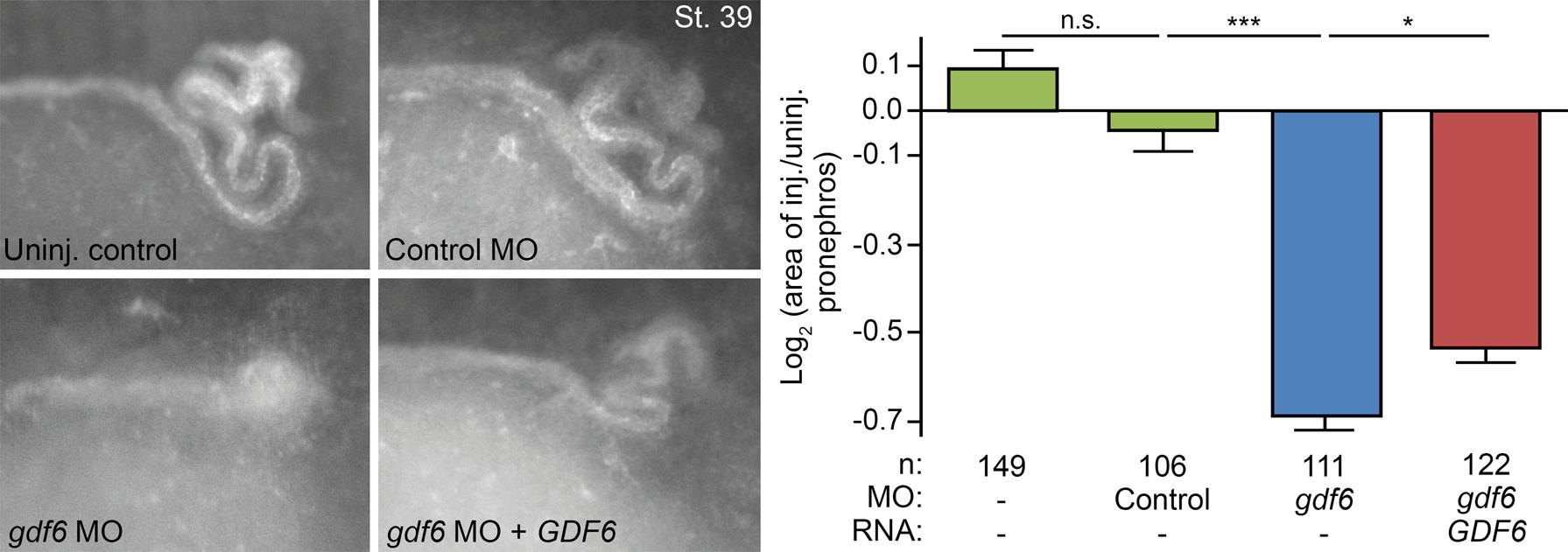 Fig. 4: Morpholino (MO) knockdown of gdf6 in Xenopus laevis impairs pronephros development..