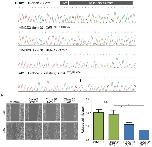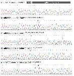 Supplementary Fig. 2 Electropherograms of the murine Gdf6 sequence in exon 1 targeted by the single guide RNA (sgRNA) used for CRISPR-Cas9 genome engineering in murine IMCD3 cell lines. a Clone 2 revealed no variation within the murine Gdf6 sequence and was used as a control. b In clone 32, the homozygous deletion c.377_378delCA causing a frameshift, p.(Ser126Cysfs*2), predicted to result in a premature stop codon and a non- functional protein was detected, thus identifying knockout of Gdf6. c The Gdf6 sequence variation in clone 34 was biallelic. d-e Gdf6 allele separation in clone 34 revealed the deletion c.373_376delAAGT on one allele and the deletion c.377_378delCA on the other allele both causing frameshifts predicted to lead to non-functional proteins, p.(Lys125Glnfs*9) and p.(Ser126Cysfs*2), or nonsense-mediated mRNA decay, thereby demonstrating knockout of Gdf6 in clone 34. The protospacer adjacent motif (PAM) for Cas9 binding and the sgRNA target region are shown in a.