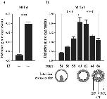 Fig. 1. Xenopus tropicalis Mtfp1 is upregulated during natural and T3-induced metamorphosis. (a) The mRNA levels of Mtfp1 during T3-induced metamorphosis. Premetamorphic stage 54 tadpoles were treated for 2 days with 10 nM T3 and total RNA was isolated from the intestine for qRT-PCR analysis (n = 3). (b) Mtfp1 mRNA level during natural metamorphosis. Total RNA was isolated from the intestine of tadpoles at indicated stages and subjected to qRT-PCR analysis (n = 3). Diagramed below the expression data are schematics of the intestine at indicated stages. The intestine at stage 54 has a simple structure with a single epithelial fold, the typhlosole, surrounded by thin layers of connective tissue and muscles. At the metamorphic climax stages 60–62, the larval epithelial cells undergo apoptosis, as indicated by the open circles, and adult stem cells, as indicated by black dots, are formed and proliferating. By stage 66, the newly formed adult epithelium (EP) has many folds, surrounded by thick layers of connective tissue (CT) and muscles (MU). L: intestinal lumen. All data are shown in mean ± S.E.M. (***P ≤ 0.005).