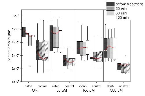 FIGURE S1 | Contact areas of claudin-5 expressing oocyte pairs in μm2 during incubation with sodium caprate in different concentrations (n = 6â8, respectively) and water-injected oocytes as controls (n = 5â7, respectively).