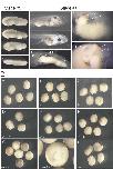 abnormalities are greater, with loss of head structures, commonly seen in many micro-injection experiments. (B) Normal control embryo. (C) Typical stage 43