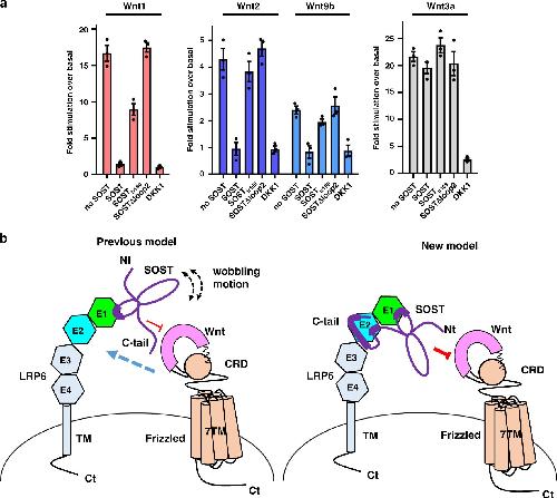Sclerostin inhibits Wnt signaling through tandem interaction with two LRP6 ectodomains.