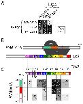 (A) Left: scheme of binding of one copy of Tpx2 residues 300-341 (rainbow blueâred) binding to four tubulin monomers. Right: close up of the surfaces of the tubulins and Tpx2, shown as a ribbon, with the ridge (300-311) and wedge (323-341), but residues 312-322 modelled as a straight rod (length 2.4 nm) as they not seen in the cryo-EM structure. Conserved side-chains in Tpx2 (F307 F334: black, H335: blue) bind into pockets formed at tubulin interfaces. Image derived from PDB 6BJC chains A-D and P (Zhang et al., 2017). The asterisk indicates space at the C-terminus of the wedge (see Discussion). (B) FAM161A and Tpx2 contain repeated ridge-like motifs. Left: Ungapped alignment of extended loops from repeats 1â3 of FAM161A and repeats 1â8 of Tpx2, indicating PF±à motifs. Pink box indicates the ridge sequence in repeat 2. Sequence directly after repeat 2 is also included, showing the linker (green letters) and wedge (red letters, helix in blue box). Centre: yellow boxes indicate charged predicted helices (average length 25 aa, numbers of missing residues shown). Right: Extended loops following the helices, containing FKA±PxP motifs. The analogous sequences in repeat 3 of both proteins do not form motifs, but are included for comparison (grey letters). Shading is according to the Clustal scheme. Numbers on the right indicate omitted residues between repeats. (C) Comparison of the wedge helix in Tpx2 with the amphipathic helix in FAM161A. Both the wedge of Tpx2 (blue box, left) and the predicted amphipathic helix of FAM161A (green box, right) are accompanied by logos made from 40 diverse sequences, and by a consensus in which bold lettering indicates a strong conservation, à is hydrophobic (black), ± is charged or polar, and other colouring is: D/E-red, KRH-blue, Q-purple, A-black.