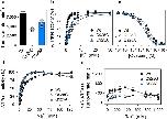 Figure 4. ATPase activity of stably expressed Q925A and Q925G mutants. The ATPase activity was determined at 37 °C in medium containing 30 mM histidine (pH 7.4), 1 mM EGTA, 3 mM MgCl2, and 3 mM ATP, together with the NaCl, KCl, and ouabain additions indicated below. Symbols and columns with error bars represent mean ± s.d. The lines show the best fits of the equations from Methods indicated below. Extracted parameters are listed in Table 2. Turnover rates were calculated as the ratio between the ATPase activity and the active site concentration (see Methods). (a) Medium additions: 130 mM NaCl, 20 mM KCl, and 10 μM ouabain. Individual data points are shown as grey circles. (b) Medium additions: 40 mM NaCl, 10 μM ouabain, and KCl as indicated. The extrapolated value corresponding to infinite K+ concentration was taken as 100%. Eq. (1) used for fitting. (c) Medium additions: 130 mM NaCl, 20 mM KCl, and ouabain as indicated. Eq. (3) used for fitting. (d) Medium additions: 20 mM KCl, 10 μM ouabain, and NaCl as indicated. The maximum was taken as 100%. K0.5 values for activation obtained by fitting Eq. 1. to the rising part of the Na+ dependence are listed in Table 2. The inhibition phase at high Na+ concentrations is caused by competition of Na+ with K+ at extracellular-facing sites due to low K+ affinity of the mutants. (e) Medium additions: 10 μM ouabain and NaCl as indicated, no KCl was present.