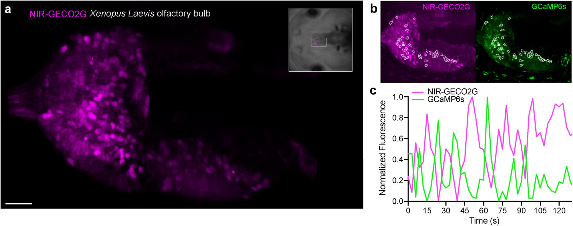 Fig 5. Spontaneous Ca2+ response imaging with NIR-GECO2G in the olfactory bulb of Xenopus laevis.