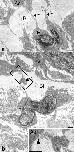 Figure 5. Epithelial-connective tissue interfaces in the X. laevis intestine during stages 61â62. Subepithelial fibroblasts (F) often possess long and thin processes ((a), arrows) and make contacts with stem/progenitor cells of the adult epithelium (Ae) through the modified basal lamina (Bl). Some of the processes are occasionally dilated ((b), arrow). Inset: Higher magnification of the boxed area in (b). The process makes contact with the adult epithelial cell (arrowhead). Bars, 1 μm.