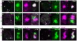 Figure 2. Outer and inner dynein arms localize to distinct sub-regions in DynAPs. (A) En face optical section of a Xenopus MCC expressing ODA subunits GFP-Dnai1 and mCherry-Dnai2 (as per lower inset in Figure 1A). The dashed box indicates the area shown at higher magnification in the panels to the right. Note near complete co-localization. (B) mCherry-Dnai2 also displays near-total co-localization with another ODA subunit, Dnal4. (C, D) mCherry-Dnai2 shows very little co-localization with the IDA subunit GFP-Wdr78 or GFP-Dnali1. (E) IDA-f subunit mCherry-Wdr78 displays little colocalization with IDA-a, c, d subunit GFP-Dnali1. (F) IDA-f subunits, mCherry-Wdr78 and GFP-Tctex1d2, show complete co-localization. Scale bar = 10 mm. |
