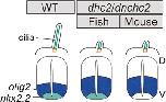 mutants. Ciliary phenotypes and dorsal expansion of olig2 domain in MZdhc2 mutants are nearly identical to those in mouse mutant but nkx2.2 expression was reported to be lost in mouse mutant [14,15]. D, dorsal; V, ventral.