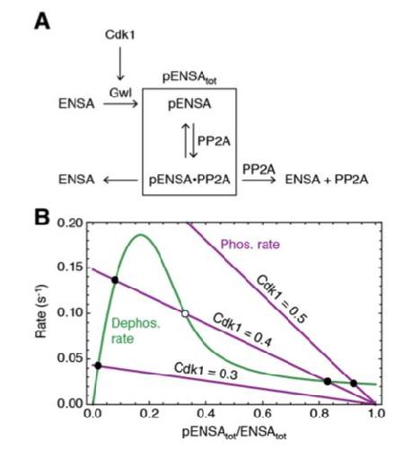 Thron, Mathematical analysis of binary activation of a cell cycle kinase which down-regulates its own inhibitor. 1999, Pubmed