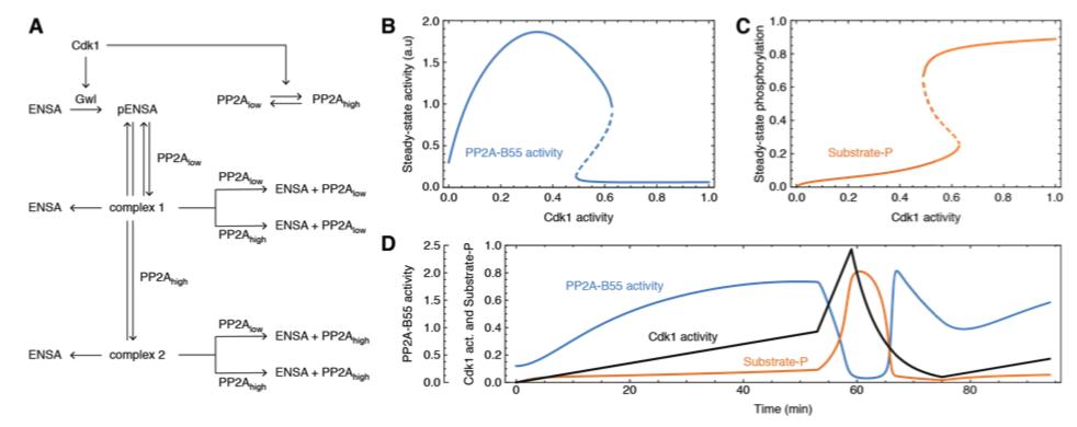 Bistable, Biphasic Regulation of PP2A-B55 Accounts for the Dynamics of Mitotic Substrate Phosphorylation.